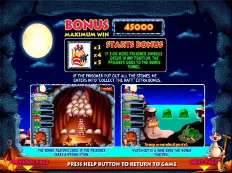 Второй бонусный раунд запускается автоматически после того, как узник поднимет 3 каменные глыбы, и обвал не обрушится. Во второй тематической бонусной игре пользователю нужно построить деревянное плавательное средство, чтобы сбежать из тюрьмы, которая находится далеко от суши. На морских волнах лежат 3 деревянные бочонки. В них содержатся материалы для строительства плота. В одной из бочек спрятано взрывное устройство, которое заканчивает призовой бонусный раунд.