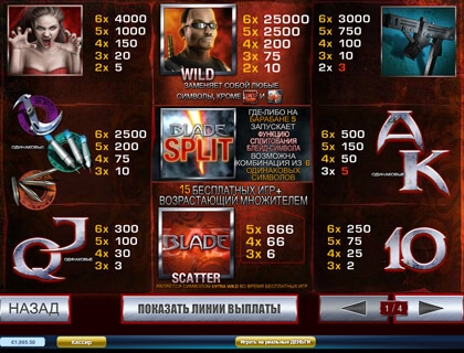 Блэйд - прекрасная игра, которая может посоперничать со многими другими слотами. Так в этом игровом автомате присутствует прогрессивный джек пот, чем не могут похвастаться игры Южный парк, Сокровища Клеопатры, Crazy Monkey и другие.