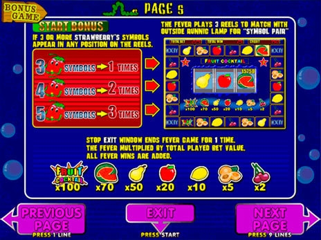 Видео слот Fruit Cocktail многим игрокам может показаться скучной разработкой. Но это далеко не так! К тому же, невозможно угодить всем и каждому. У постоянных клиентов онлайн казино сформировались свои взгляды на игровые новинки аппаратов и давно существующие видео слоты. Но если пользователь захочет приятно провести время, принять участие в оригинальном бонусном раунде и увлекательном рискованном туре, то ему необходимо посетить видео слот Фруктовый коктейль.