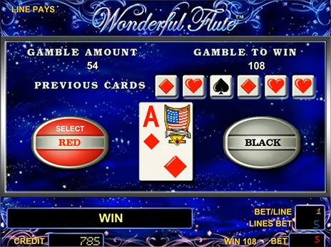 По сравнению с игровыми автоматами King Kong, Arm Bandit в видео слоте Wonderful Flute экран заполнен 5 барабанами. Игра по максимальным ставкам оплачивается в 900 кредитных единиц. Ставки в аппаратах Diamond Dogs, Lara Croft, Theme Park, Dolphin Spins и др. гораздо ниже. А от размера ставки напрямую зависит призовая выплата.